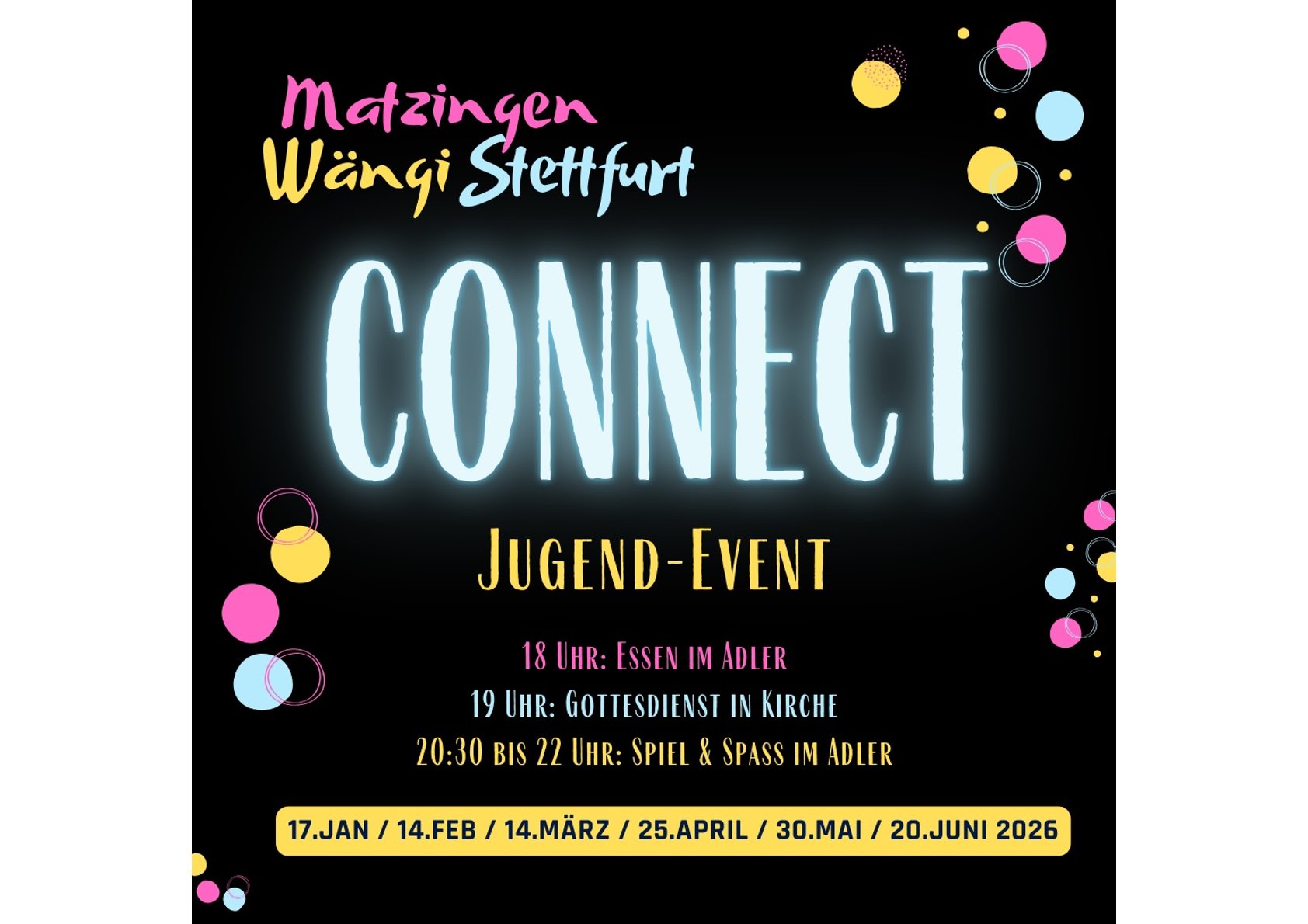 Event für Jugendliche und junge Erwachsene ab der 6. Klasse aus Stettfurt, Matzingen und Wängi.